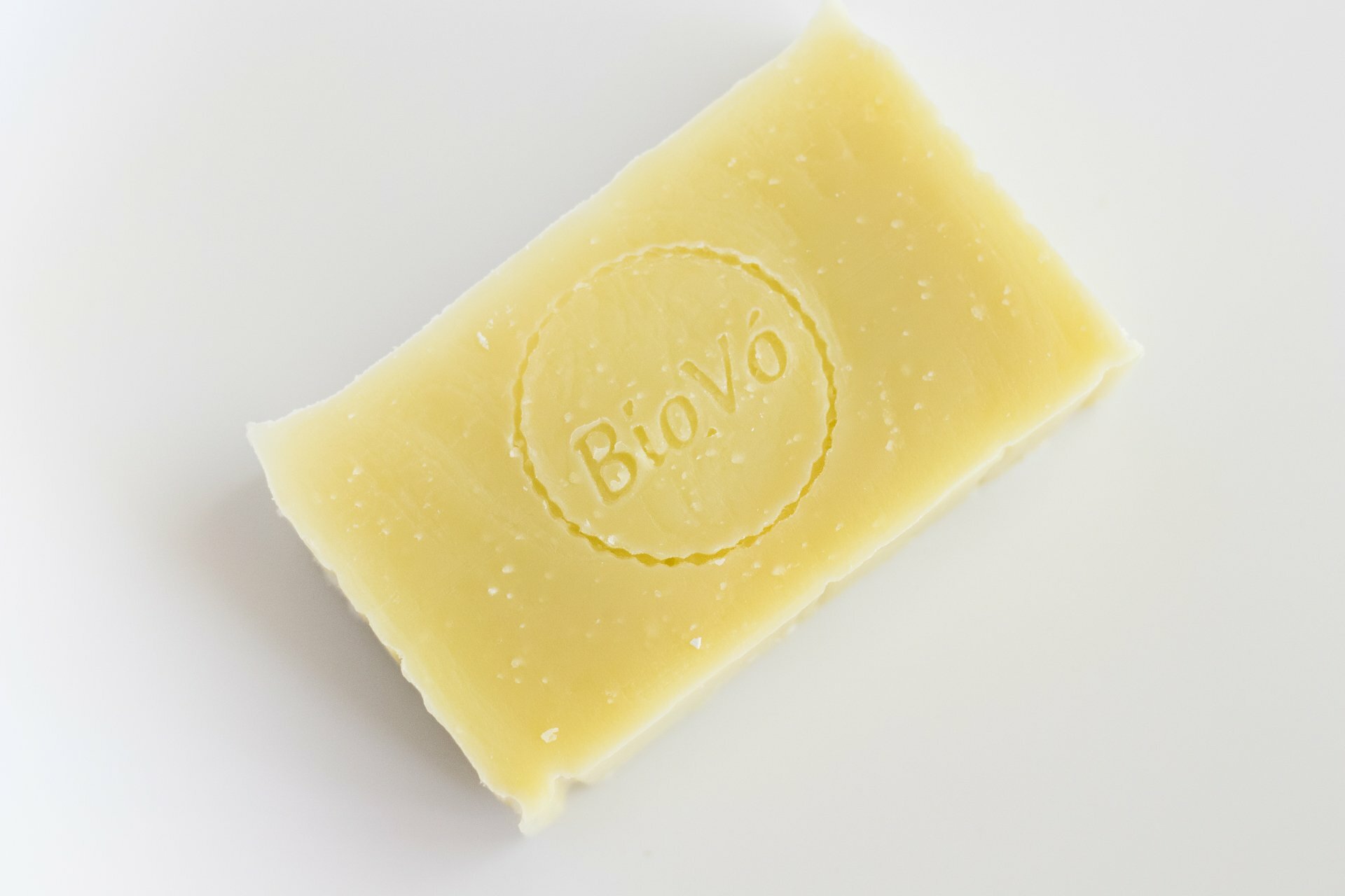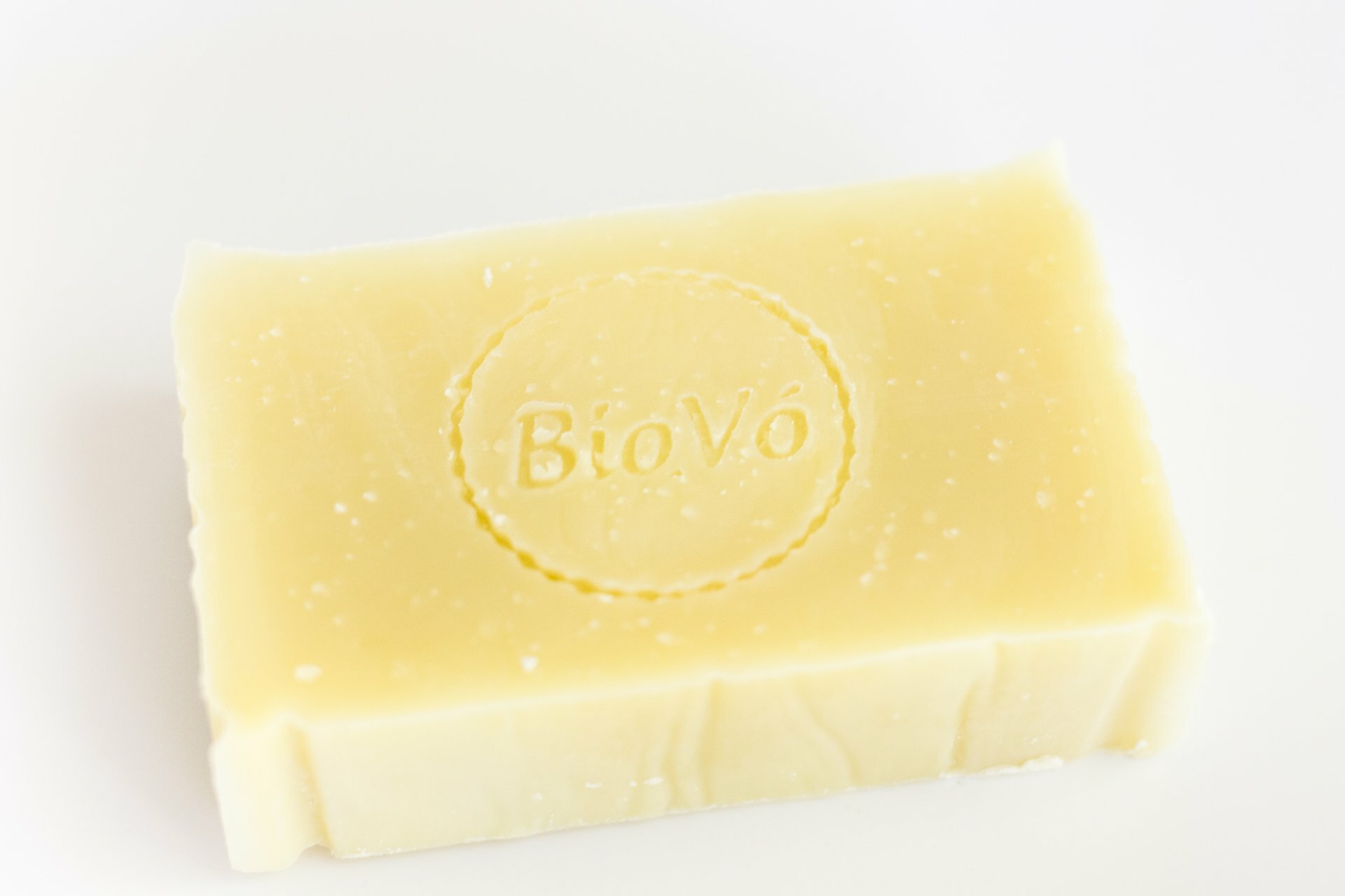 Ingredientes: Óleo de oliva, água, óleo de coco, manteiga de cacau, óleo de ricino, hidróxido de sódio. Com ingredientes de origem biológica