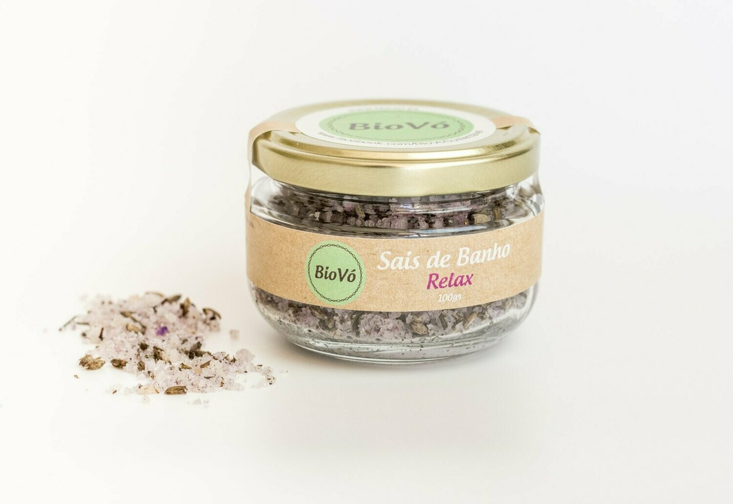 Os sais de banho da BioVó são produzidos com Sal de Rio Maior e óleo de grainha de uv